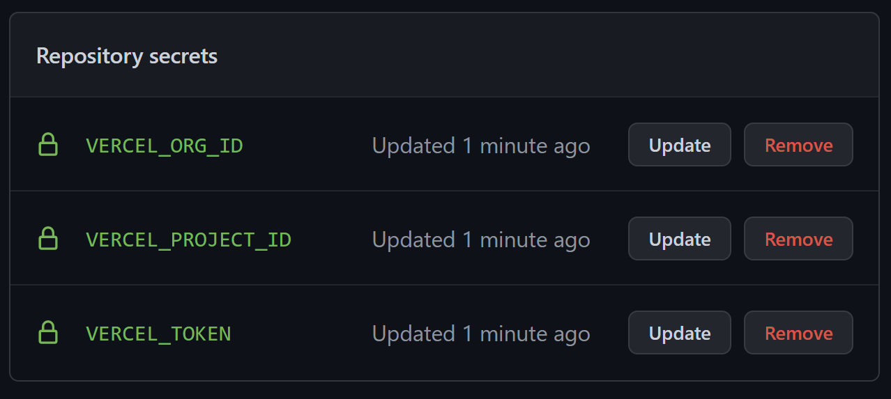 In this section we will setup a simple GitHub Actions workflow with production (main) and develop (develop) branches that will build and deploy our website on Vercel.